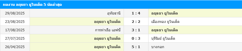 สถิติ 5 เกมหลังสุดของ อยุธยา ยูไนเต็ด