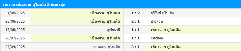 สถิติ 5 เกมหลังสุดของ สิงห์ เชียงราย ยูไนเต็ด
