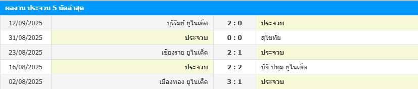 สถิติ 5 เกมหลังสุดของ พีที ประจวบ เอฟซี