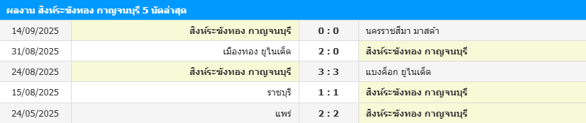 สถิติ 5 เกมหลังสุดของ พลังกาญจน์ เอฟซี