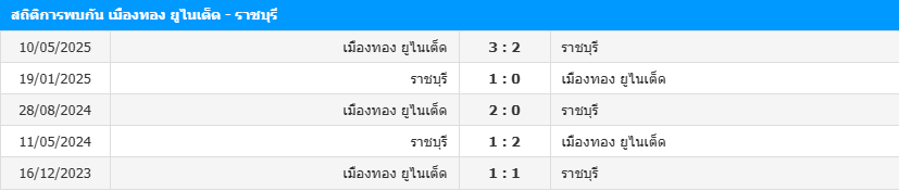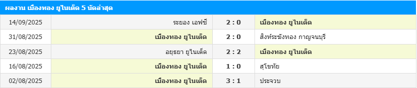 สถิติ 5 เกมหลังสุดของ เมืองทอง ยูไนเต็ด