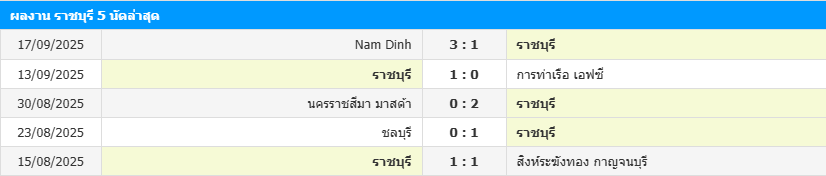 สถิติ 5 เกมหลังสุดของ ราชบุรี เอฟซี