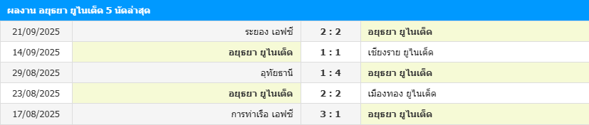 สถิติ 5 เกมหลังสุดของ อยุธยา ยูไนเต็ด