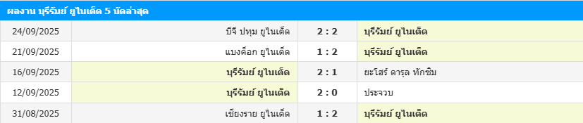 สถิติ 5 เกมหลังสุดของ บุรีรัมย์ ยูไนเต็ด