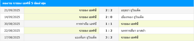 สถิติ 5 เกมหลังสุดของ ระยอง เอฟซี