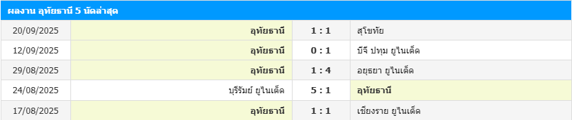 สถิติ 5 เกมหลังสุดของ อุทัยธานี เอฟซี