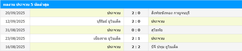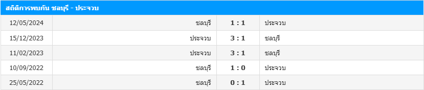 สถิติ 5 เกมหลังสุดของ พีที ประจวบ เอฟซี