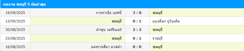 สถิติ 5 เกมหลังสุดของ ชลบุรี เอฟซี