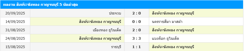 สถิติ 5 เกมหลังสุดของ พลังกาญจน์ เอฟซี