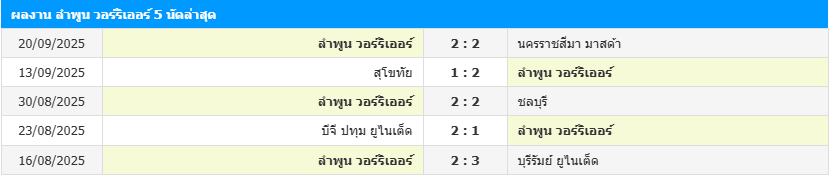 สถิติ 5 เกมหลังสุดของ ลำพูน วอริเออร์