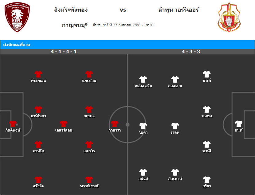 บทวิเคราะห์เกม : มีโอกาสออกมาแบบสูสี แต่หากมองตามสถิติ พลังกาญจน์ เอฟซี ดูได้เปรียบจากการเล่นในบ้านที่แข็งแกร่งและยังไม่แพ้ใครในซีซั่นนี้ ขณะที่ ลำพูน วอริเออร์ ยังหาฟอร์มเก่งไม่เจอ โดยเฉพาะเกมเยือนที่เปราะบางพอสมควร คาดว่าเจ้าถิ่นจะพยายามเปิดเกมบุกกดดันตั้งแต่ต้น แต่ทีมเยือนอาจเลือกตั้งรับและรอโต้กลับเป็นหลัก