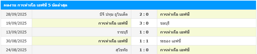 สถิติ 5 เกมหลังสุดของ การท่าเรือ เอฟซี