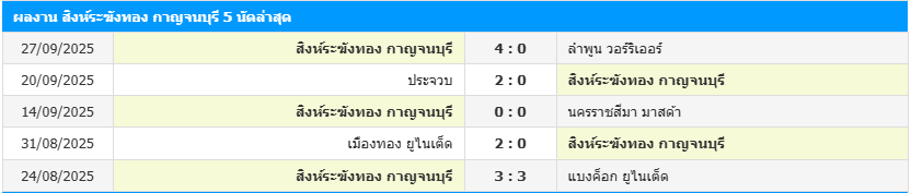 สถิติ 5 เกมหลังสุดของ พลังกาญจน์ เอฟซี