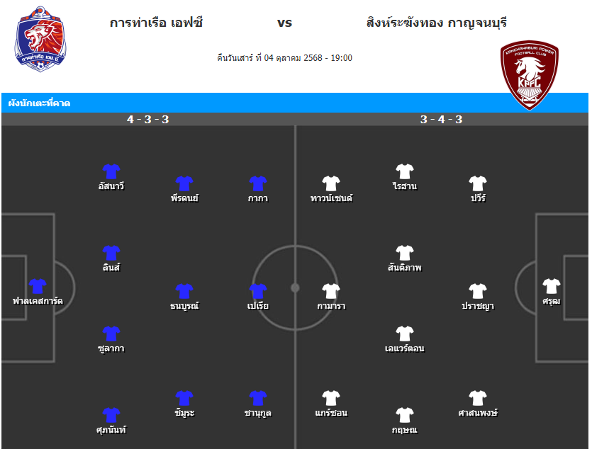 บทวิเคราะห์เกม : การท่าเรือ เอฟซี ได้เปรียบชัดเจนจากสถิติในบ้านที่แข็งแกร่งและเกมรุกที่มีประสิทธิภาพสูง ขณะที่พลังกาญจน์ฯ ยังคงเจอปัญหาเกมเยือนและแนวรับไม่มั่นคง เมื่อเปรียบเทียบฟอร์มทั้งสองทีม เจ้าถิ่นเหนือกว่าอย่างชัดเจน มีโอกาสสูงที่จะเก็บชัยชนะได้