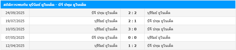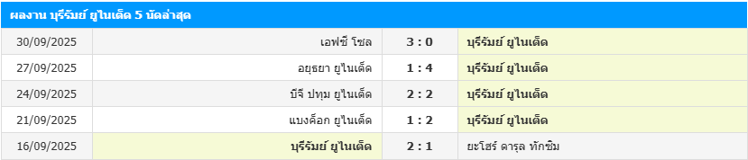 สถิติ 5 เกมหลังสุดของ บุรีรัมย์ ยูไนเต็ด