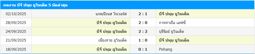 สถิติ 5 เกมหลังสุดของ บีจี ปทุม ยูไนเต็ด