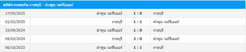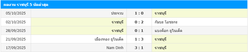 สถิติ 5 เกมหลังสุดของ ราชบุรี เอฟซี