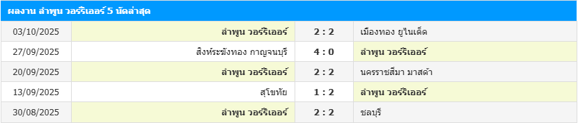 สถิติ 5 เกมหลังสุดของ ลำพูน วอริเออร์
