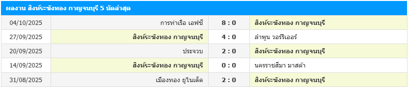 สถิติ 5 เกมหลังสุดของ พลังกาญจน์ เอฟซี