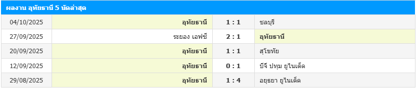สถิติ 5 เกมหลังสุดของ อุทัยธานี เอฟซี