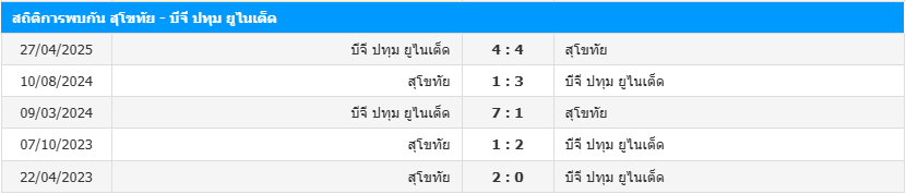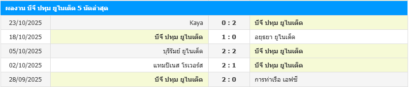สถิติ 5 เกมหลังสุดของ บีจี ปทุม ยูไนเต็ด