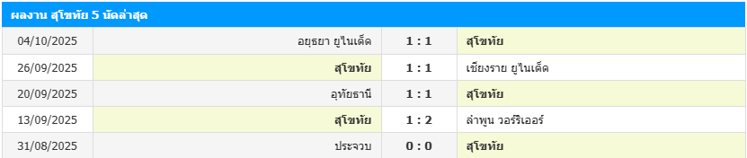 สถิติ 5 เกมหลังสุดของ สุโขทัย เอฟซี