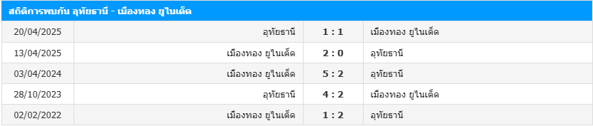 สถิติ 5 เกมหลังสุดของ เมืองทอง ยูไนเต็ด