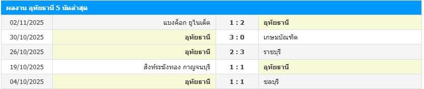 สถิติ 5 เกมหลังสุดของ อุทัยธานี เอฟซี