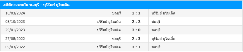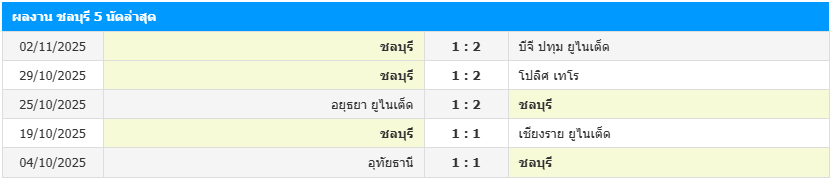 สถิติ 5 เกมหลังสุดของ ชลบุรี เอฟซี