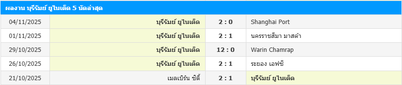สถิติ 5 เกมหลังสุดของ บุรีรัมย์ ยูไนเต็ด