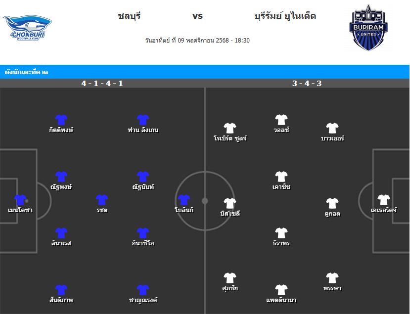 บทวิเคราะห์เกม : แม้ชลบุรีจะได้เล่นในถิ่น แต่ฟอร์มในบ้านยังไม่ดีพอจะต้านความแข็งแกร่งของทีมเยือนที่มีแนวรุกเฉียบขาดและระบบทีมที่ลงตัวกว่า หากมองจากตัวเลขทั้งผลงานและสถิติการพบกันที่ผ่านมา บุรีรัมย์ยังเหนือกว่าทุกด้าน คาดว่าทีมเยือนจะคุมจังหวะเกมไว้ได้และเก็บสามแต้มต่อเนื่อง
