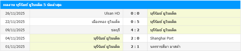 สถิติ 5 เกมหลังสุดของ บุรีรัมย์ ยูไนเต็ด
