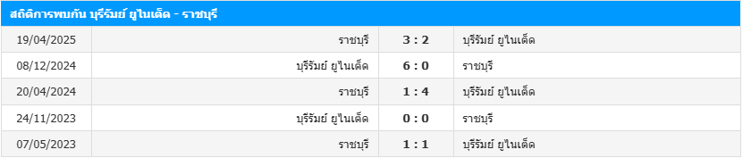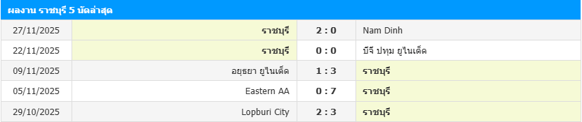 สถิติ 5 เกมหลังสุดของ ราชบุรี เอฟซี
