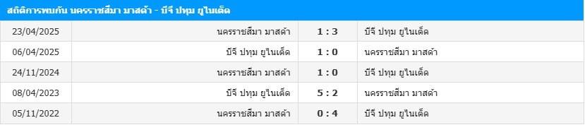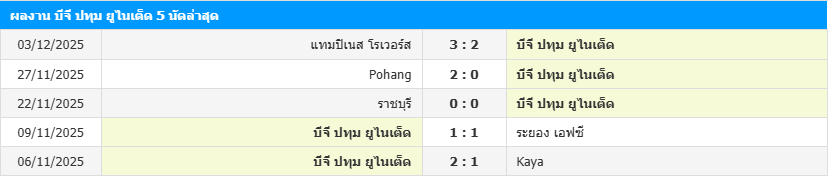 สถิติ 5 เกมหลังสุดของ บีจี ปทุม ยูไนเต็ด