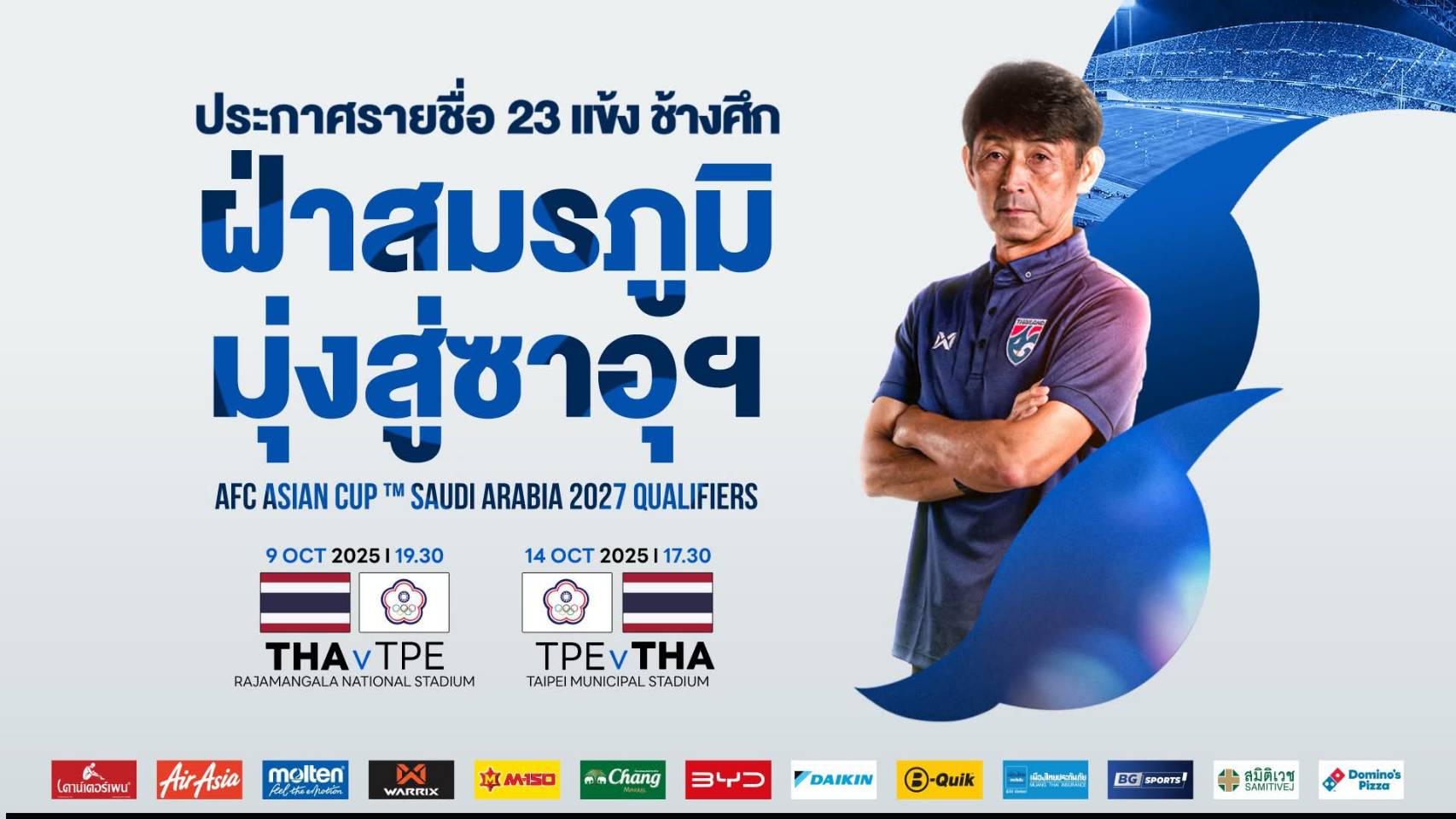 สมาคมกีฬาฟุตบอลแห่งประเทศไทย ในพระบรมราชูปถัมภ์ ประกาศรายชื่อ 23 นักฟุตบอลทีมชาติไทย ชุดทำการแข่งขันฟุตบอลเอเชียน คัพ 2027 รอบคัดเลือก