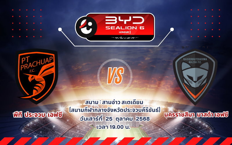 วิเคราะห์บอล ไทยลีก 2025/26 นัดที่ 9 พีที ประจวบ เอฟซี vs นครราชสีมา มาสด้า เอฟซี (25/10/68)