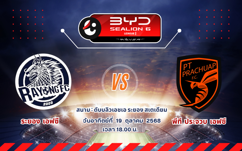 วิเคราะห์บอล ไทยลีก 2025/26 นัดที่ 8 ระยอง เอฟซี vs พีที ประจวบ เอฟซี (19/10/68)