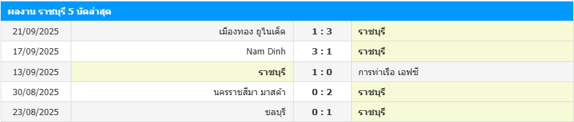 สถิติ 5 เกมหลังสุดของ ราชบุรี เอฟซี