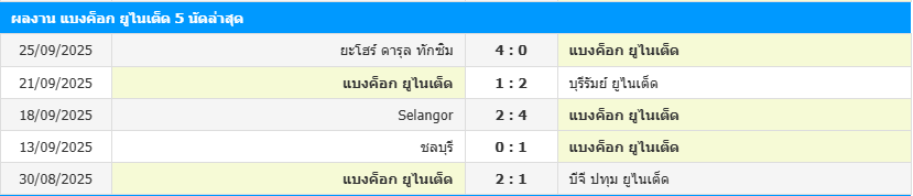 สถิติ 5 เกมหลังสุดของ ทรู แบงค็อก ยูไนเต็ด